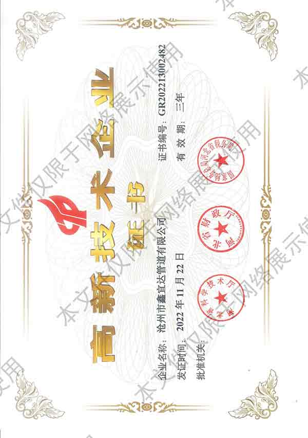 滄州市鑫宜達管道有限公司成立于2003年7月,坐落于滄州經(jīng)濟開發(fā)區(qū),占地面積40萬平方米,注冊資金1.81億元,是集螺旋鋼管生產(chǎn)、防腐加工以及無縫鋼管、卷板、帶鋼等品類鋼材經(jīng)營銷售于一體的工貿型企業(yè)。公司現(xiàn)有員工400多人,其中,中高級技術職稱的人員達120余名。 滄州市鑫宜達管道有限公司擁有9條螺旋鋼管生產(chǎn)線和3PE防腐生產(chǎn)線,可生產(chǎn)直徑219--3640mm,壁厚5.5--28mm,最高鋼級X100的各種規(guī)格防腐螺旋鋼管...
